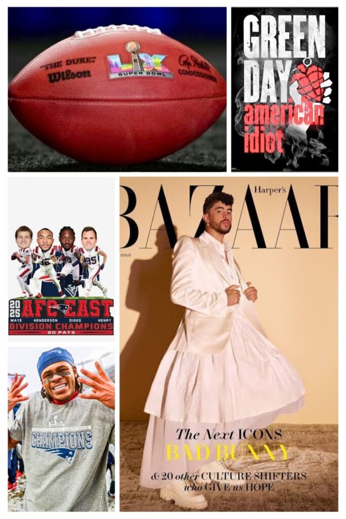 The AFC Champion New England Patriots will face the NFC Champion Seattle Seahawks once more! They met previously during Super Bowl XLIX in 2014, where the NE Patriots defeated the Seahawks 28-24, after the Patriots staged a 10-point fourth-quarter comeback, sealed by Patriot’s cornerback Malcolm Butler’s interception of the Seahawk’s QB Russel Wilson at the 1-yard line with 20 seconds remaining in Super Bowl XLIX! Tom Brady was the Super Bowl MVP in 2014, passing for 4 touchdowns. This year, aside from broadcast coverage by NBC, Superbowl LX will also stream live on the Peacock, DirecTV, Hulu and NFL+ Networks/Platforms. There will be pre-game performances from; Green Day, Charlie Puth; who is singing the National Anthem, Brandi Carlisle; who is scheduled to sing “America the Beautiful,” and Grammy winner Coco Jones, who will perform “Lift Every Voice and Sing.” Green Day is scheduled to play their pre-show performance at 6 PM EST. The Halftime Performance Show will feature Puerto Rican Superstar and Grammy-winning singer, songwriter, record producer and rapper Bad Bunny, AKA Benito Antonio Martinez Ocasio. Bad Bunny’s accolades include: 3 Grammy Awards, 17 Latin Grammy Awards, 8 Billboard Awards, and 13 Lo Nuestro Awards. He was crowned “Artist of the Year” by Billboard in 2022. He was the most streamed artist on Spotify from 2020-2022 and 2025; he was second in 2023 and 3rd in 2024. Outside of music, Bad Bunny occasionally performs in professional wrestling on WWE programming and made his in-ring debut at WrestleMania 37. He is a one-time WWE 24/7 Champion and has wrestled at the 2022 Royal Rumble and the 2023 Backlash pay-per-view events. Additionally, Bad Bunny has starred in multiple films, including 2022’s “Bullet Train,” 2023’s “Cassandro,” and the films “Caught Stealing,” and “Happy Gilmore 2,” both in 2025. Bad Bunny has also collaborated with CROCS having created glow-in-the-dark clogs inspired by his “YHLQMDLG” album, was featured in GUCCI’S 2024 VALIGERIA campaign, became a global ambassador for Calvin Klein in 2025, and since 2021, Bad Bunny has routinely collaborated with Adidas to redesign various collections within the sneaker line, such as the Campus, the Forum, and the Gazelle sneaker line, among others.